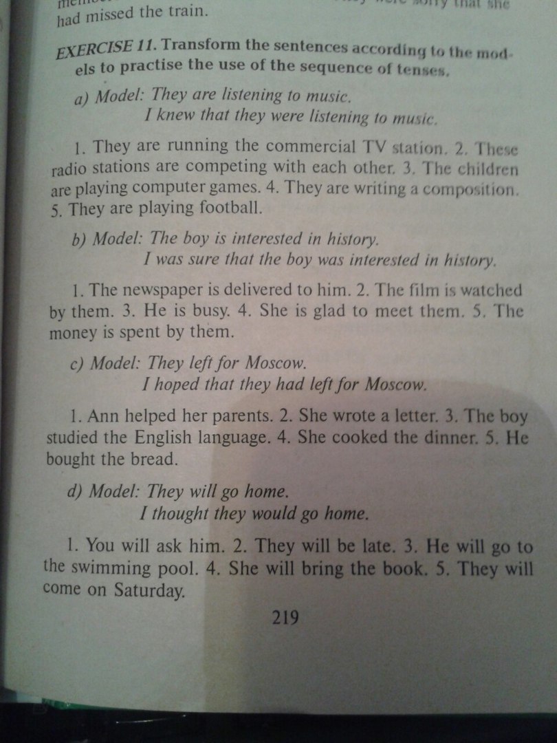 c)1. I hoped that Ann had helped her parents. 2. I hoped that she had wrote a letter. 3. I hoped that the boy had studied the English language. 4. I hoped that she had cooked the dinner. 5. I hoped that he had bought the bread.