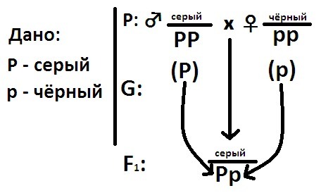 У кур породы плимутрок доминантный ген серой окраски оперения (Р) локализован в Z-хромосоме. Его рецессивный аллель (р) вызывает черную окраску оперения. Гомозиготный серый петух скрещен с курицей, у которой черная окраска оперения. Определите фенотипы птенцов в первом поколении. Составьте схему наследования