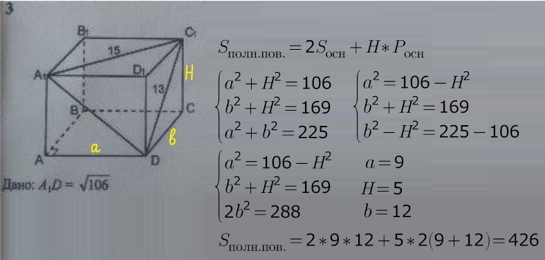 боковые грани тоже прямоугольники (по условию: параллелепипед прямой)