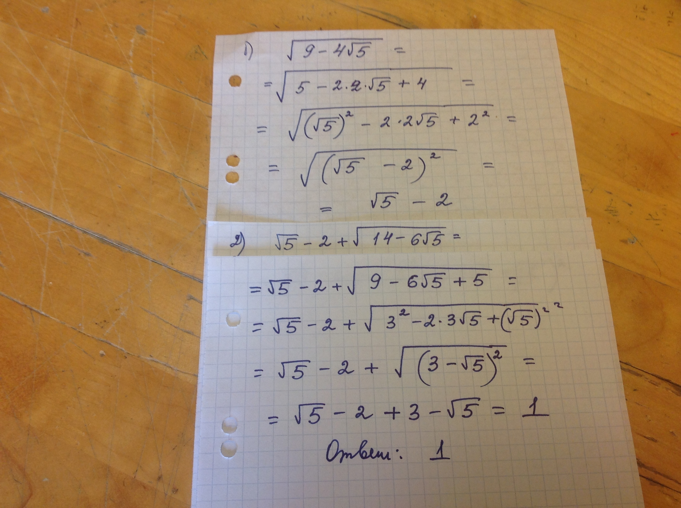 [tex] sqrt{9- sqrt{4 sqrt{5} } } + sqrt{14-6 sqrt{5} } [/tex]