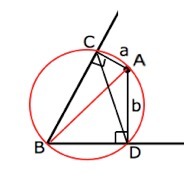Обозначим вершину угла В , расстояние от А до одной стороны АС=а, расстояние до другой стороны АD=b.