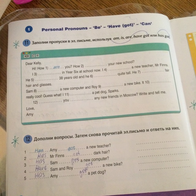 1 - are, 2 - is, 3 - am, 4 - have got, 5 - is, 6 - is, 7 - has got, 8 - has got, 9 - has got, 10 - is, 11 - have got, 12 - Have...got.