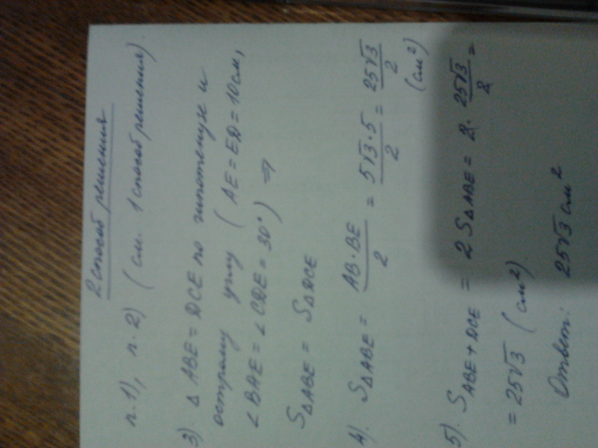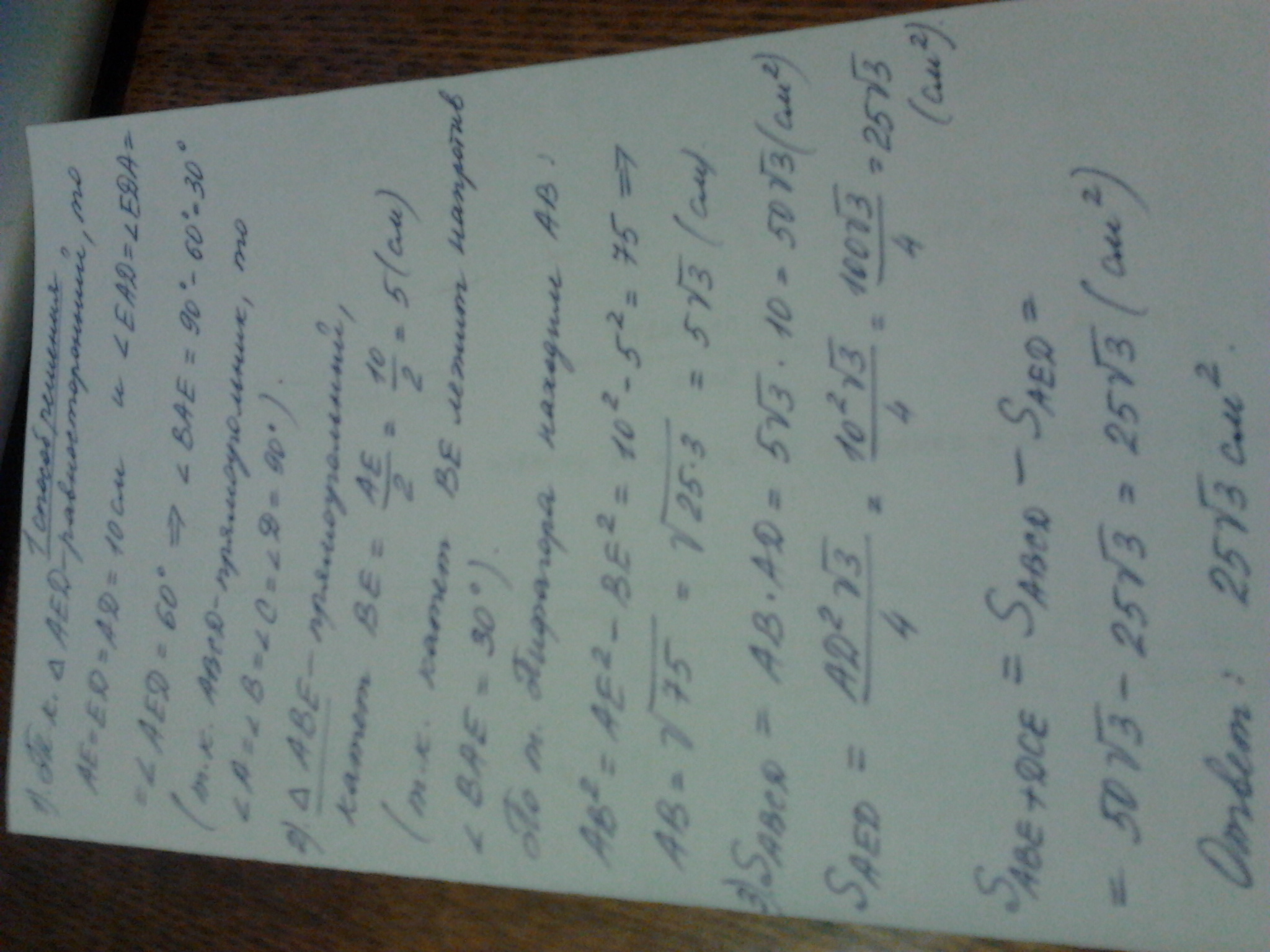 abcd прямоугольник , aed равносторонний треугольник . найдите площадь заштрихованной части если аd 10см