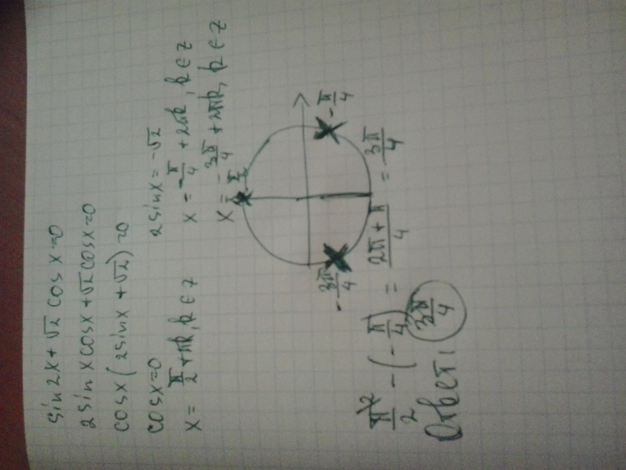 найдите расстояние между наименьшим положительным и наибольшим отрицательным корнями равнения, отмеченными на координатной прямой.