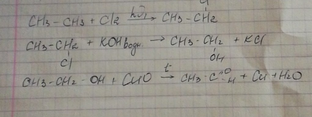 Этан -> Хлорэтан -> Этанол -> Этаналь