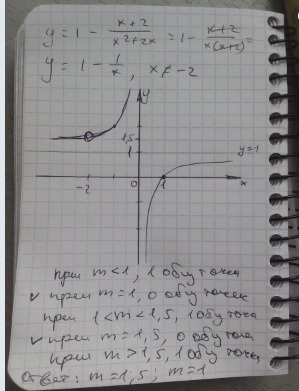 Постройте график функции у=1-х^4+х^3/х+х^2 и определите, при каких значениях m прямая y=m имеет с графиком две общие точки.