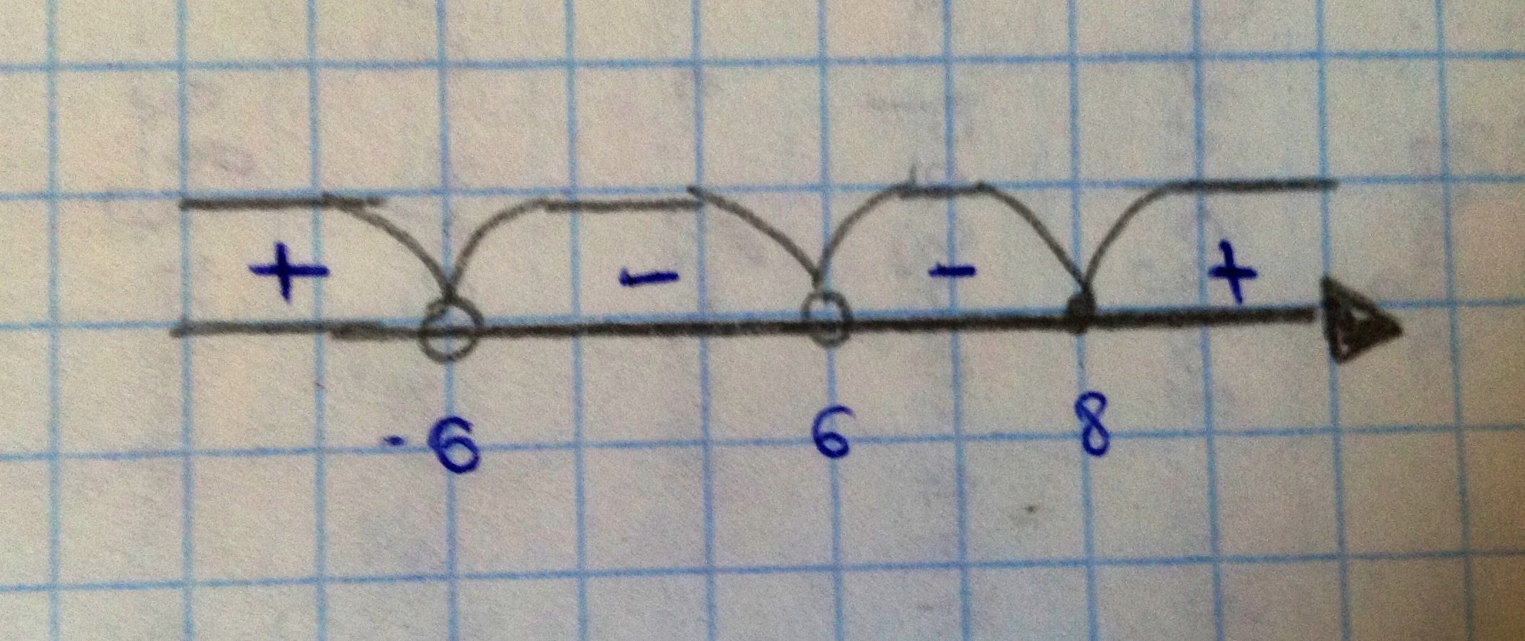 Ответ: область определения функции (- ∞; - 6) U [8; + ∞)