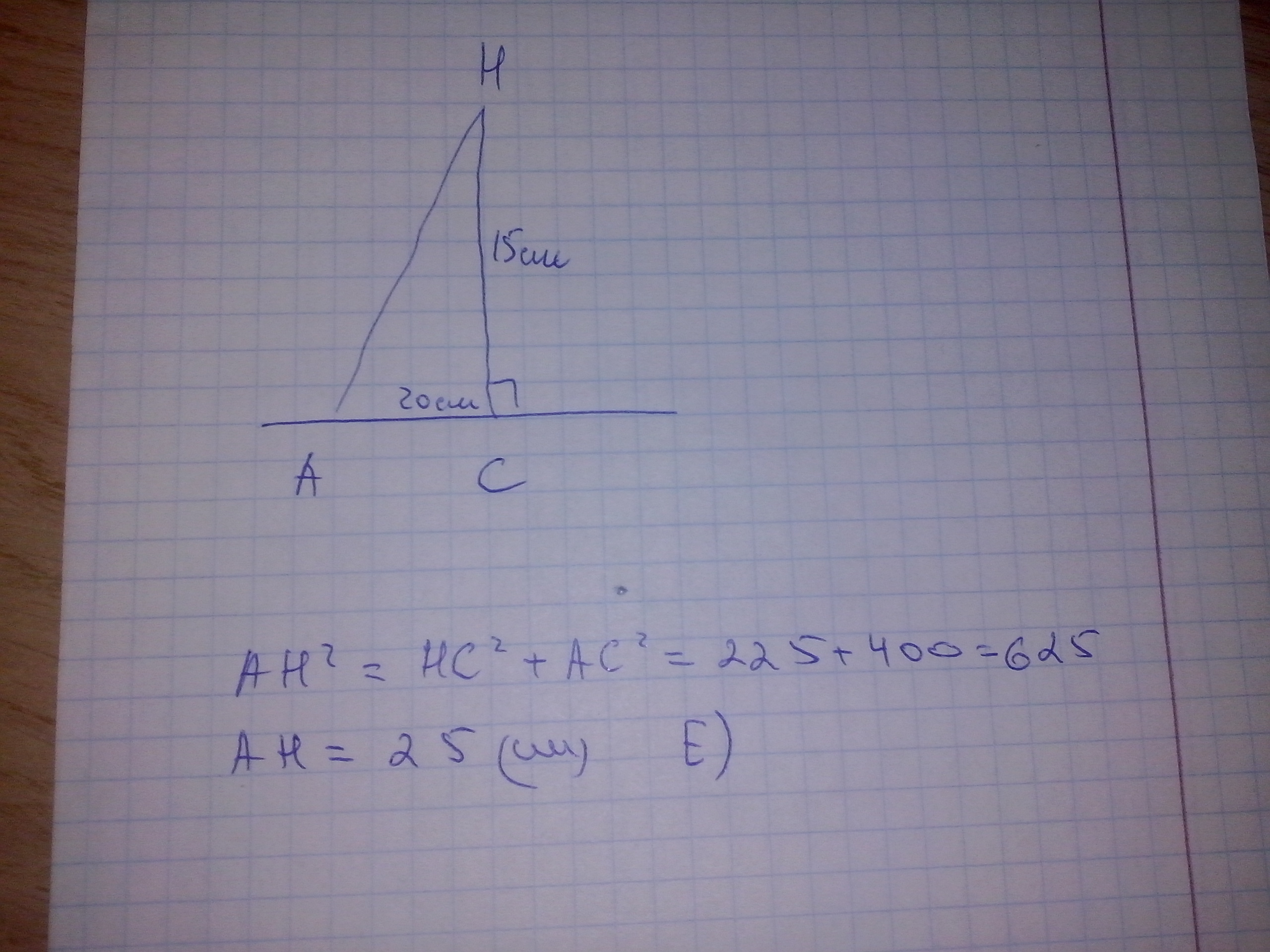 AH^2 = HC^2 + AC^2 = 225 + 400 = 625
