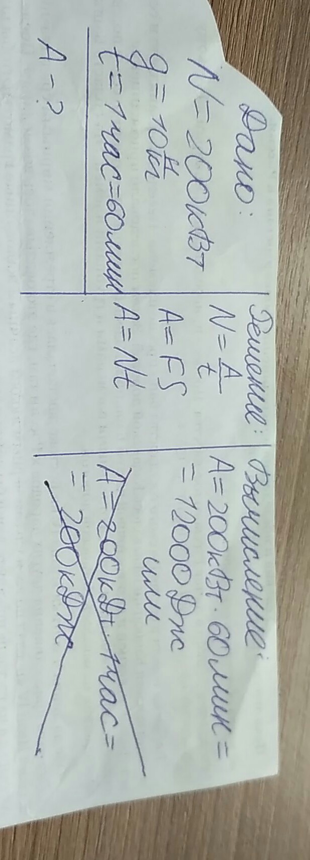 A = 200 кВт * 1 ч = 200 кВт*ч