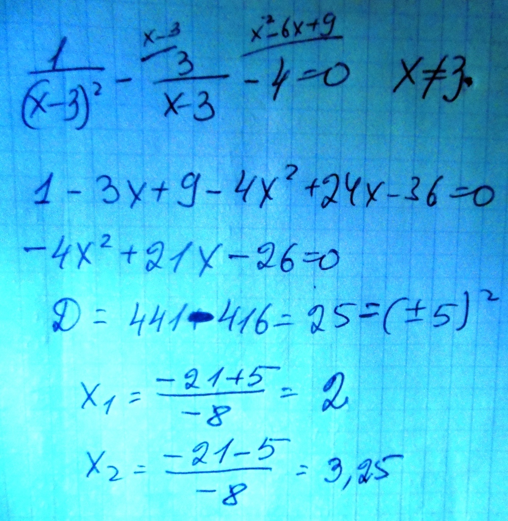1-3x+9-4(x-3)^2/(x-3)^2=0.