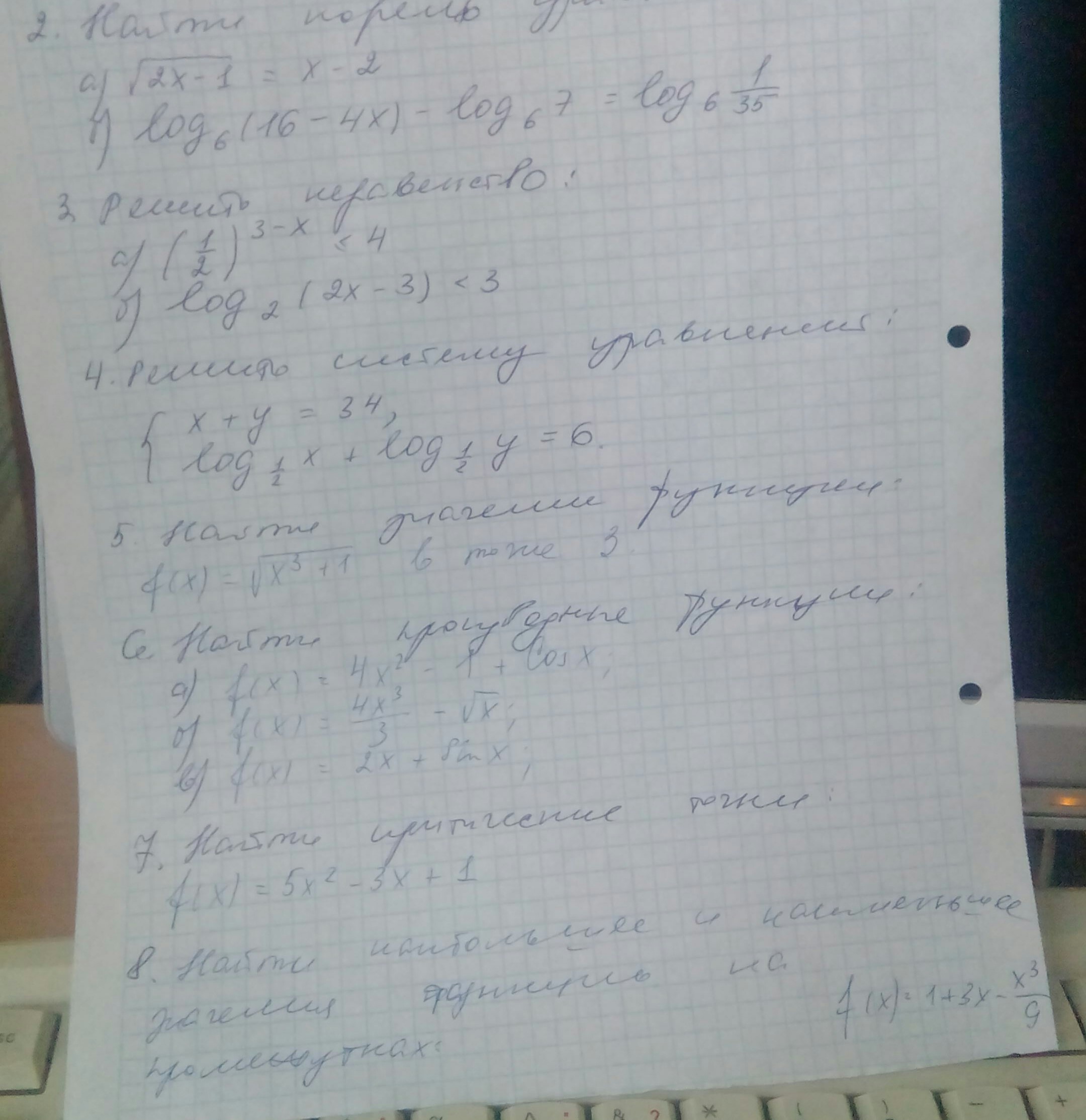 * в 3 задании в б ошибка. ответ исправленный- х принадлежит (1,5;5,5)