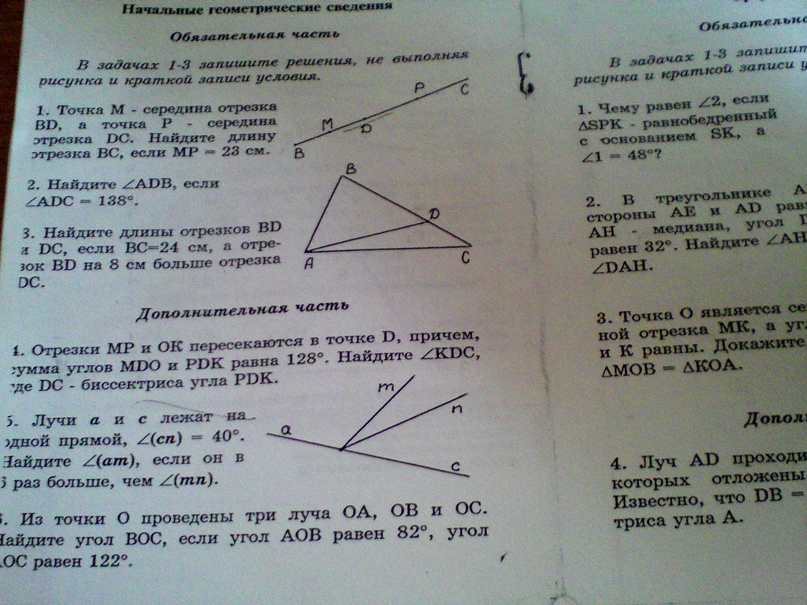 углы ADB и ADC - смежные, их сумма составляет 180 градусов. Следовательно угол ADB=180-138=42