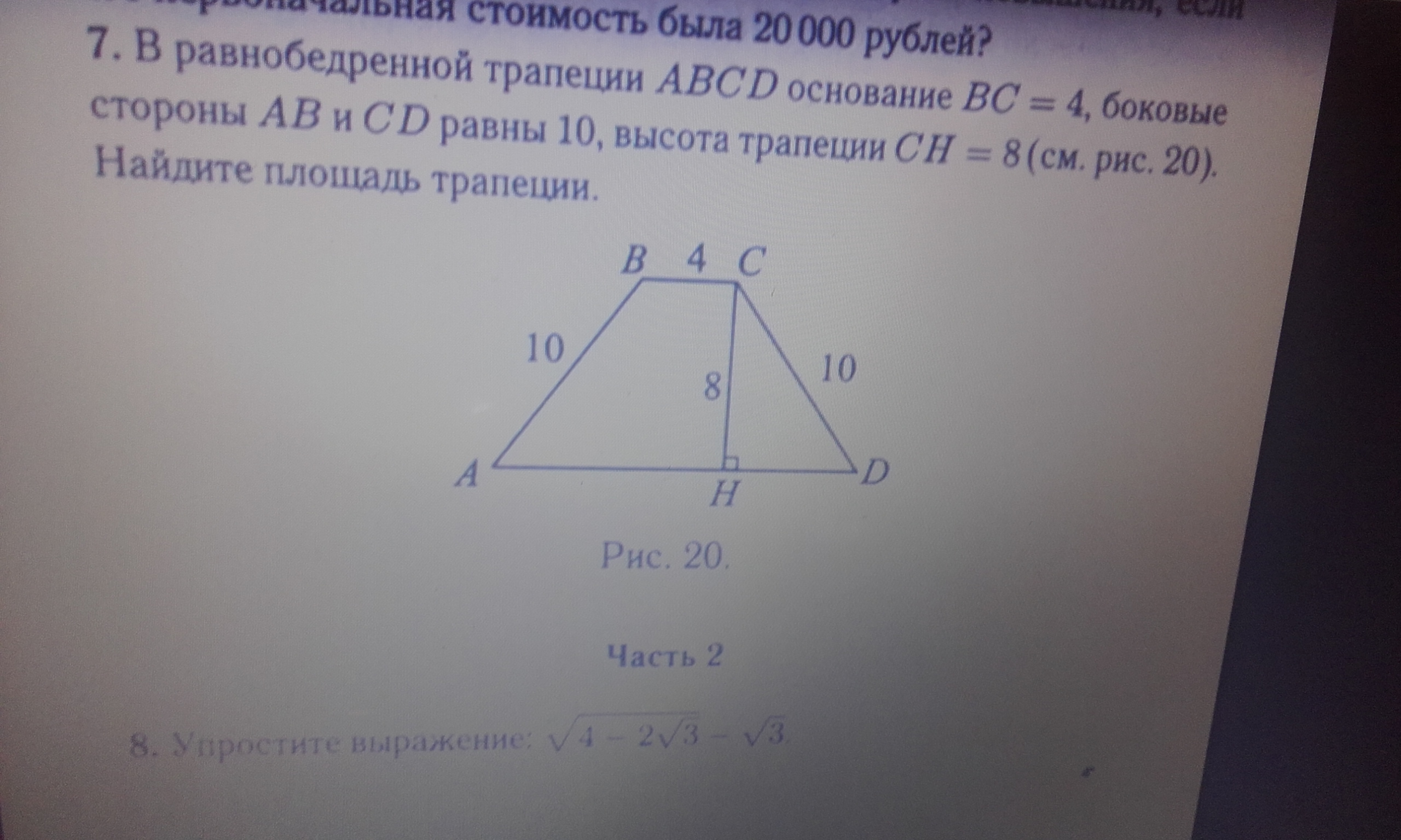 S=ВС+АД/2 *Н=(4+76):2*8=40*8=320см2