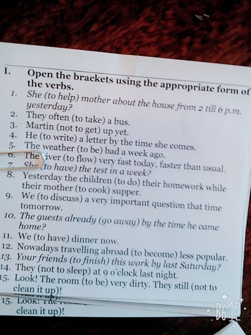 1.Haf she helped Mother about the house from 2 till 6 pm yesterday?