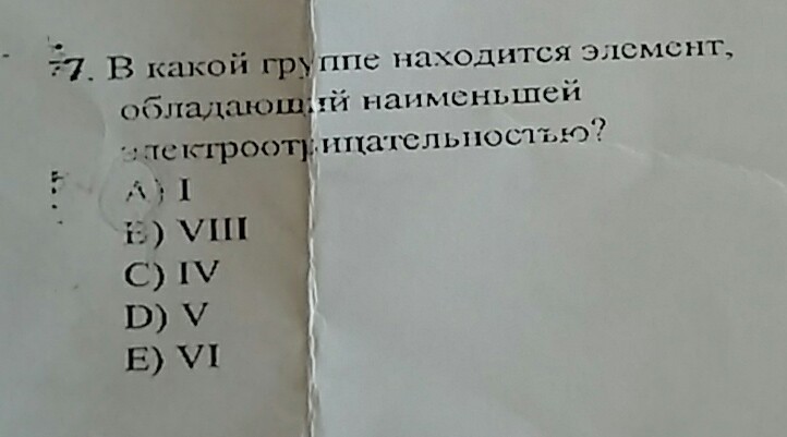 Элемент с наименьшей электроотрицательностью находится в 1 группе