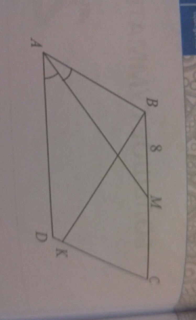 В параллелограмме ABC биссектриса AM угла A делит сторону BC на две части. Найдите площадь параллнлограмма, если BM=8 см и расстояние от вершины B до стороны CD равно 15 см