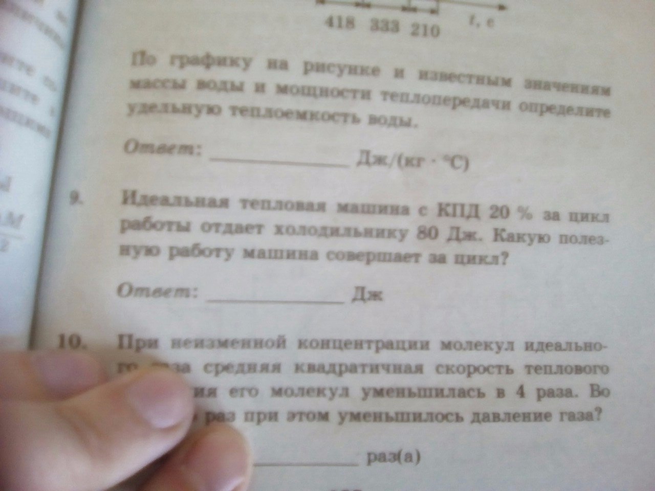 Помогите пожалуйста с 9-ым заданием. Там же нужно использовать формулу кпд=Q1-Q2/ Q1, как я понимаю, а Q1-Q2= A. как вывести Q1 из формулы для кпд?