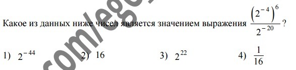 (2^-4)^6 / 2 ^ -20 = 2^-24 / 2^20 = 2^-4= 1/16