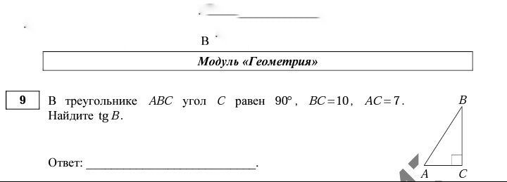 тангенс это отношения АС на ВС то есть тангенс ∠В= 7/10