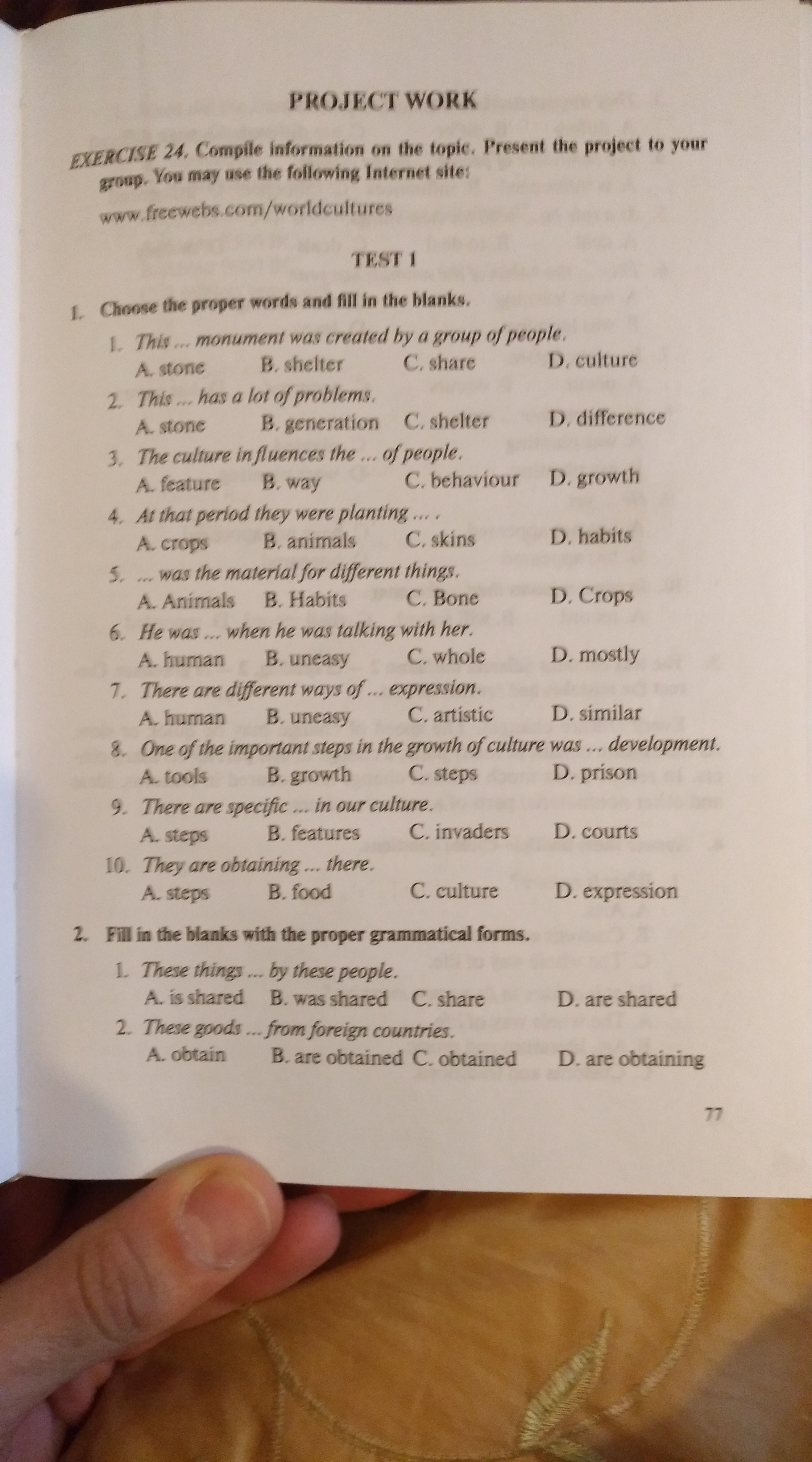 Решительно пожалуйста тест 1 по тексту human culture. Сам тест и текст вы найдеде в фото