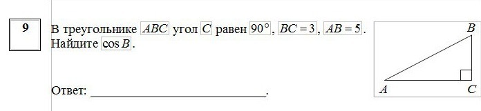 3÷5=0,6 косинус это отношение при лежащего катета к гипотенузе