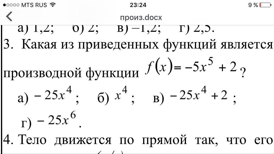потому что мы берем производную в этом примере , степень 5 вычитается -1 и переносится цыфра 5 к -5 и преумножается , а 2 в степени так как это обычное число приравнивается к 0 , итого получаем -5*5х'4