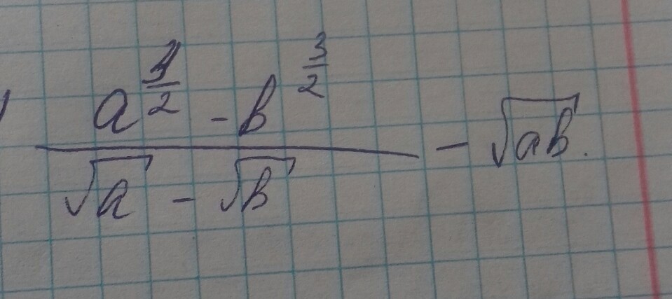 (a^3/2-b^3/2)/√a-√b -√ab=(√a^3-√b^3)/√a-√b - √ab=(a√a-b√b)/√a-√b - √ab=