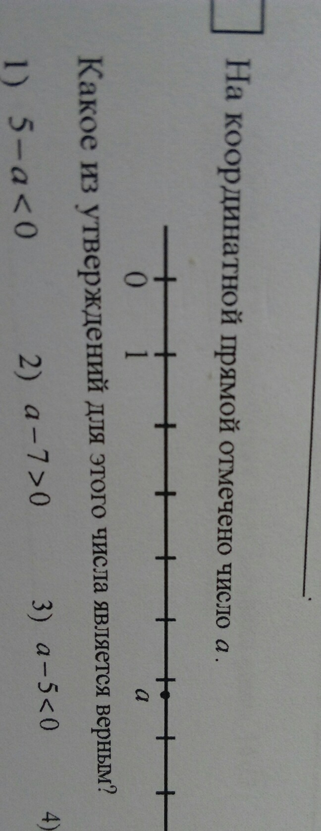 На координатной прямой отмечено число а?Какое из утверждений для этого числа является верным