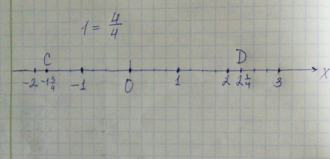 Выбрав соответсвующий единичный отрезок,отметьте на координатной прямой точки: C(-1 3/4);D(2 1/4).Если можно напишите на листке.Даю 10 баллов