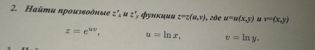 dz/du = v*e^(uv); dz/dv = u*e^(uv)
