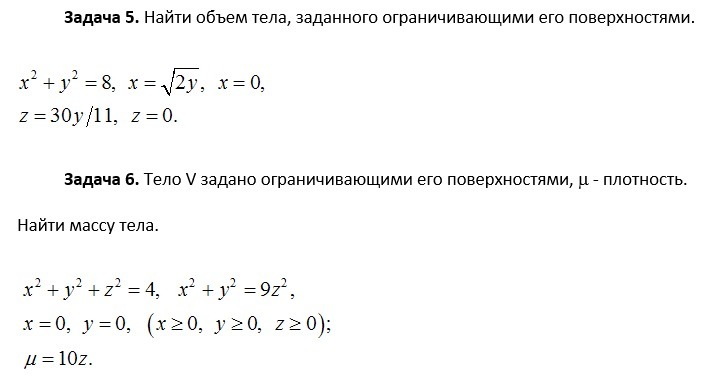 Задача 6. Тело V задано ограничивающими его поверхностями, - плотность. Найти массу тела.