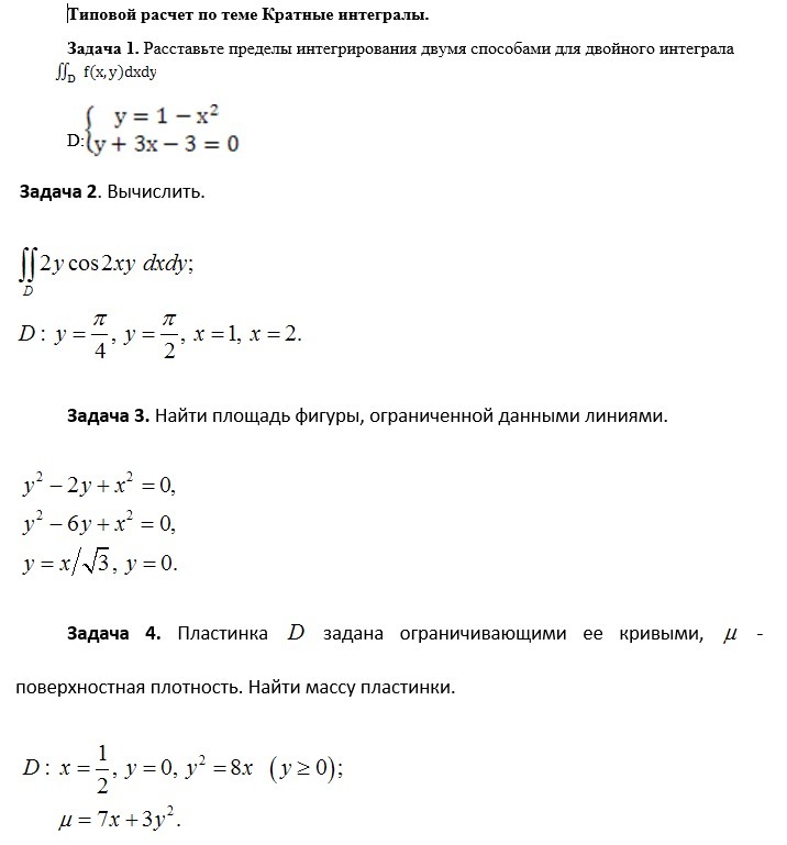 Математический анализ Типовой расчет по теме Кратные интегралы.