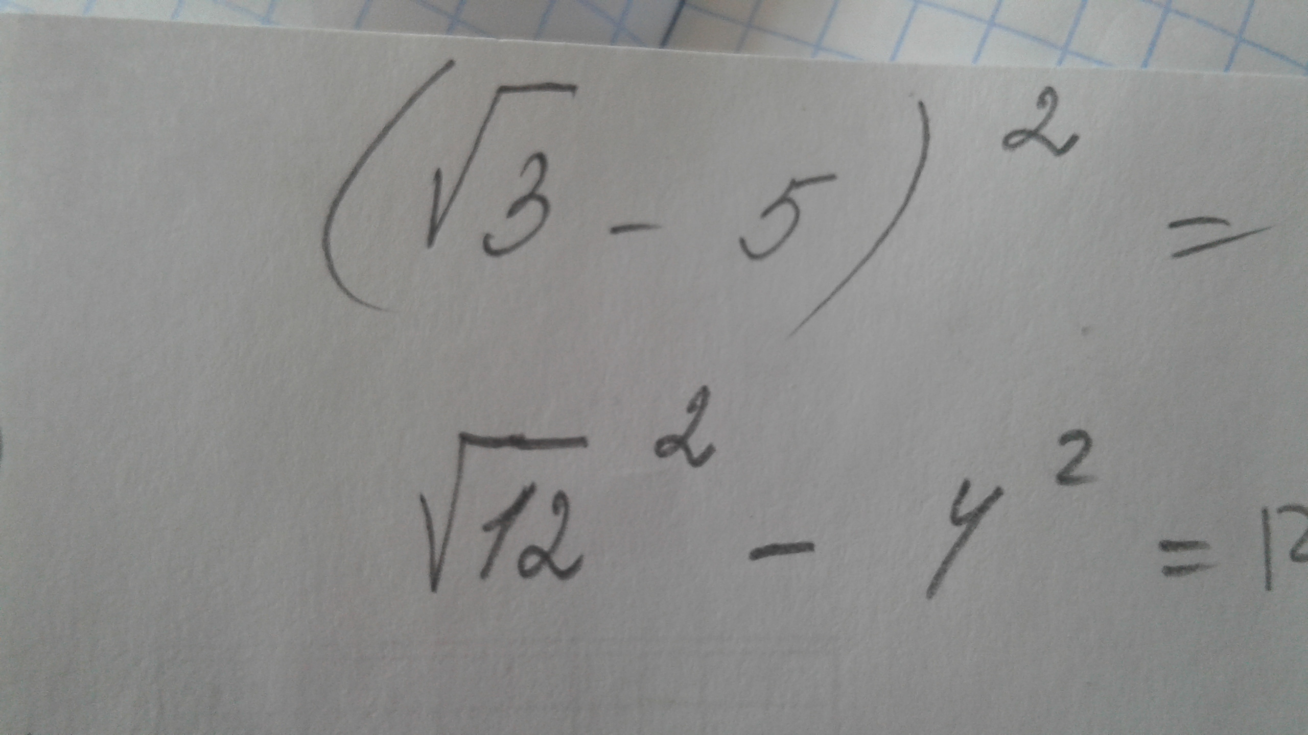 ( sqrt{3}-5 )^2=( sqrt{3})^2-2*5* sqrt{3}+5^2=3-10 sqrt{3}+25=28-10 sqrt{3}\