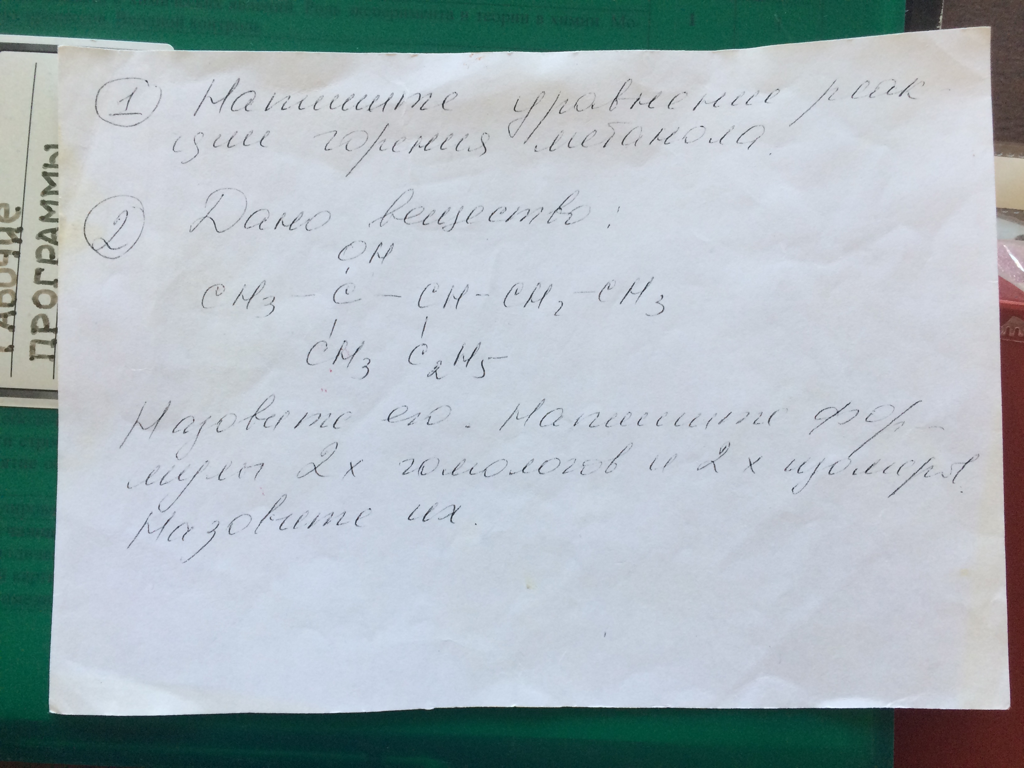 1) 2CH3OH + 2O(2) -> 2CO(2) + 4H2O
