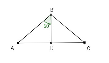 Задан равнобедренный треугольник ΔABC с основанием AC = 22 см. Отрезок BK биссектриса, ∠ABK = 50°. Найдите КС, ∠ABС и ∠BKA
