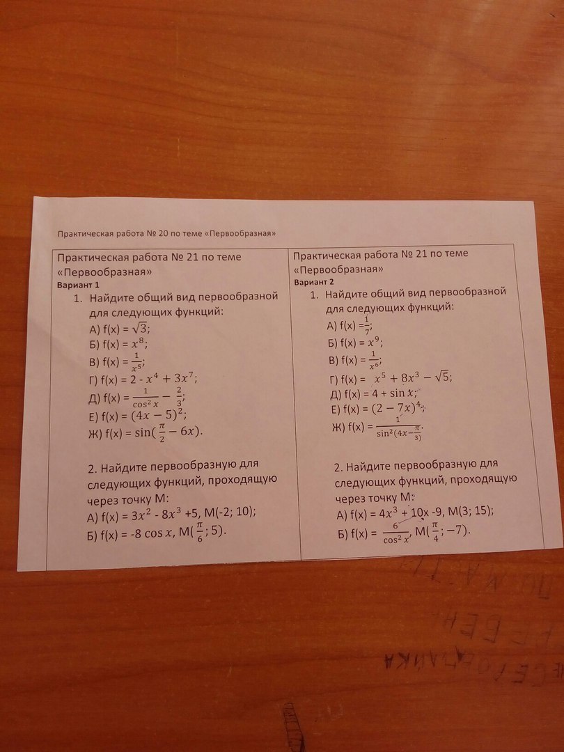 Помогите решить пожалуйста алгебру, тема "первообразная" (Любой пример,несколько хотя бы)