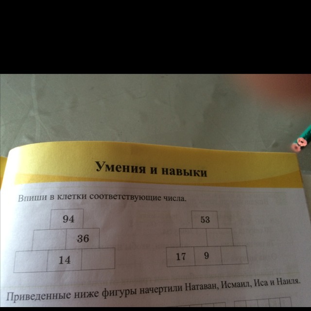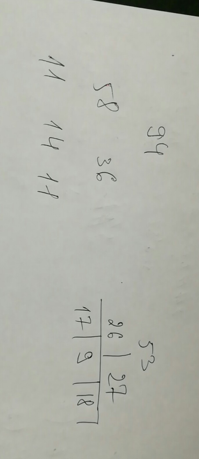 В первой пирамиде по 11,чтобы получилось 36 и 94-36 получим 58