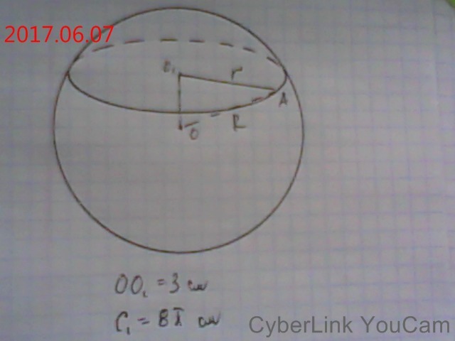 О1 - центр секущей плоскости, АО1 - радиус секущей плоскости r.