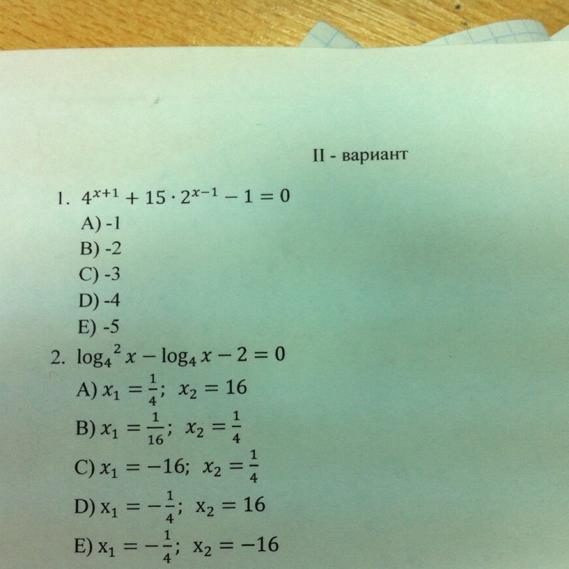 1) 4^x+1 + 15*2^x-1 - 1=0