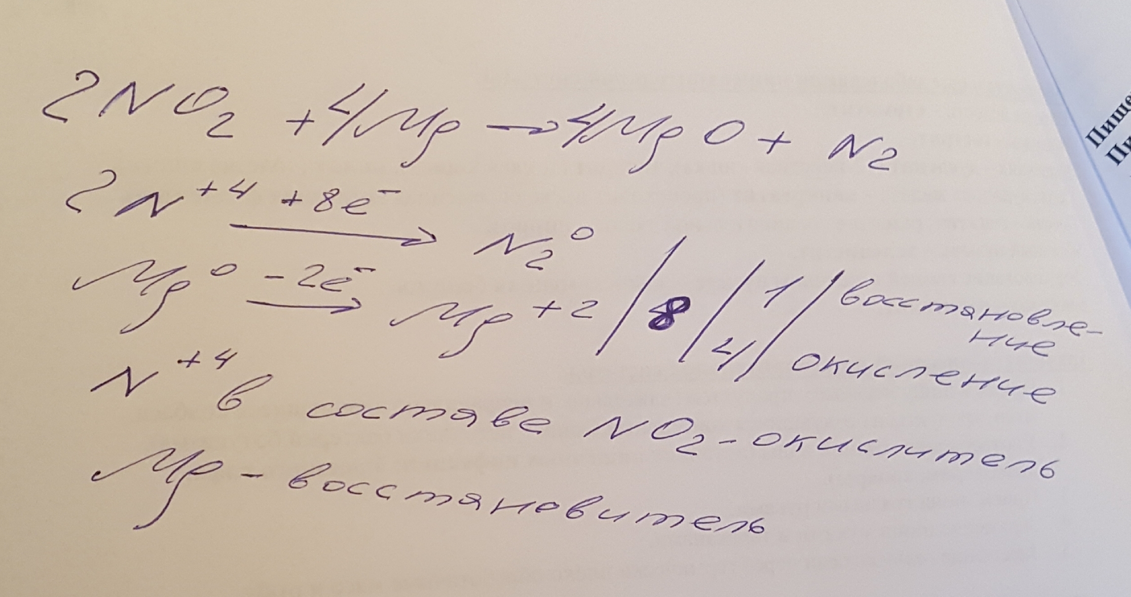 NO2 + Mg → MgO + N2 ОВР пожалуйста. Я завтра по химии слегка экзамен сдаю...и похоже из-за нервов я тут с азотом запуталась. ХЕЛЬПЪ МИ
