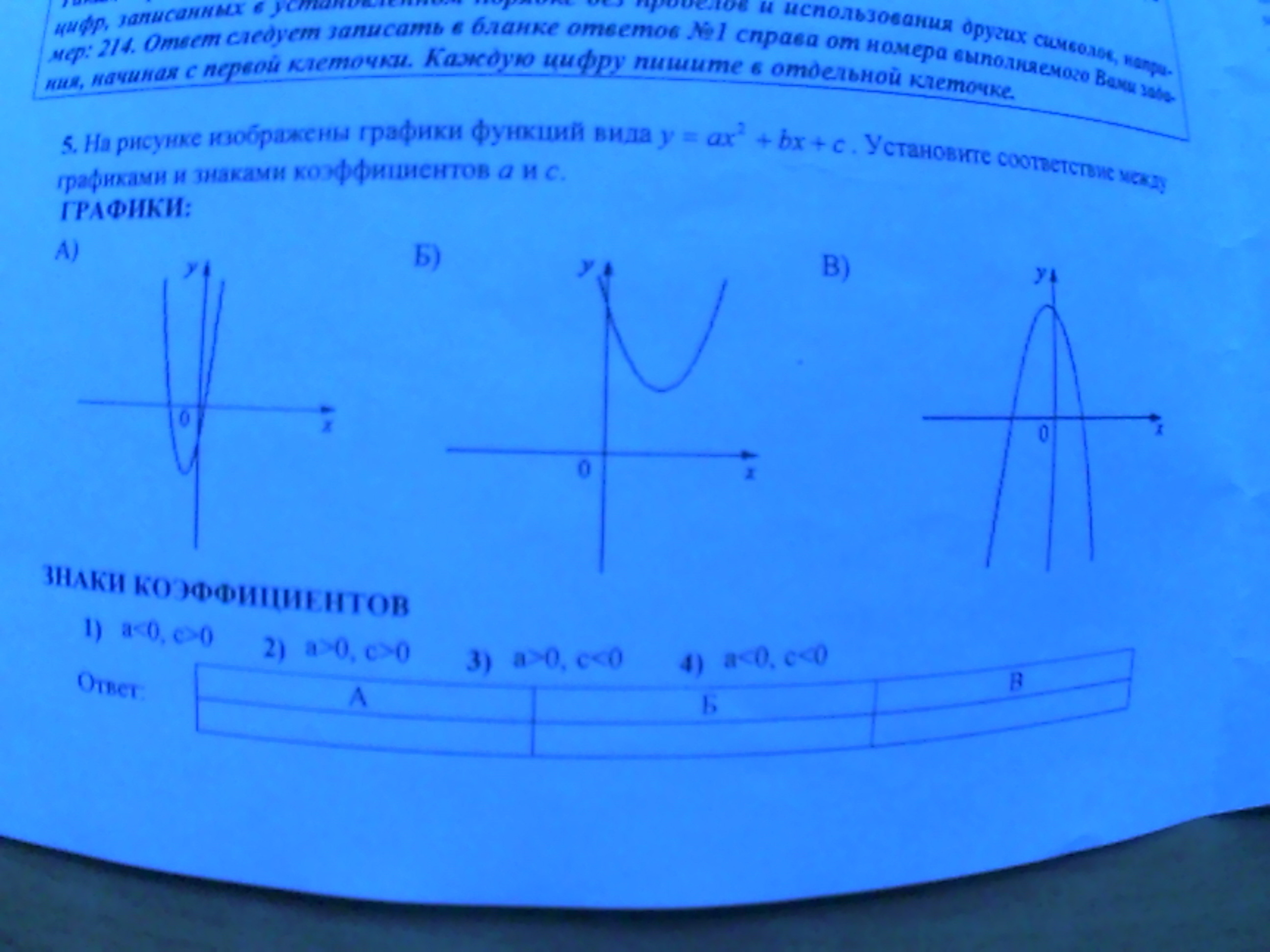 Б) а > 0, с > 0