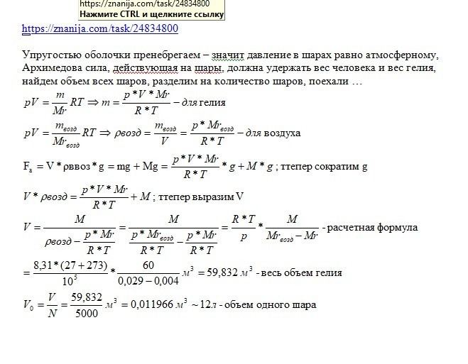 Архимедова сила, действующая на шары, должна удержать вес человека и вес гелия, найдем объем всех шаров, разделим на количество шаров, поехали …
