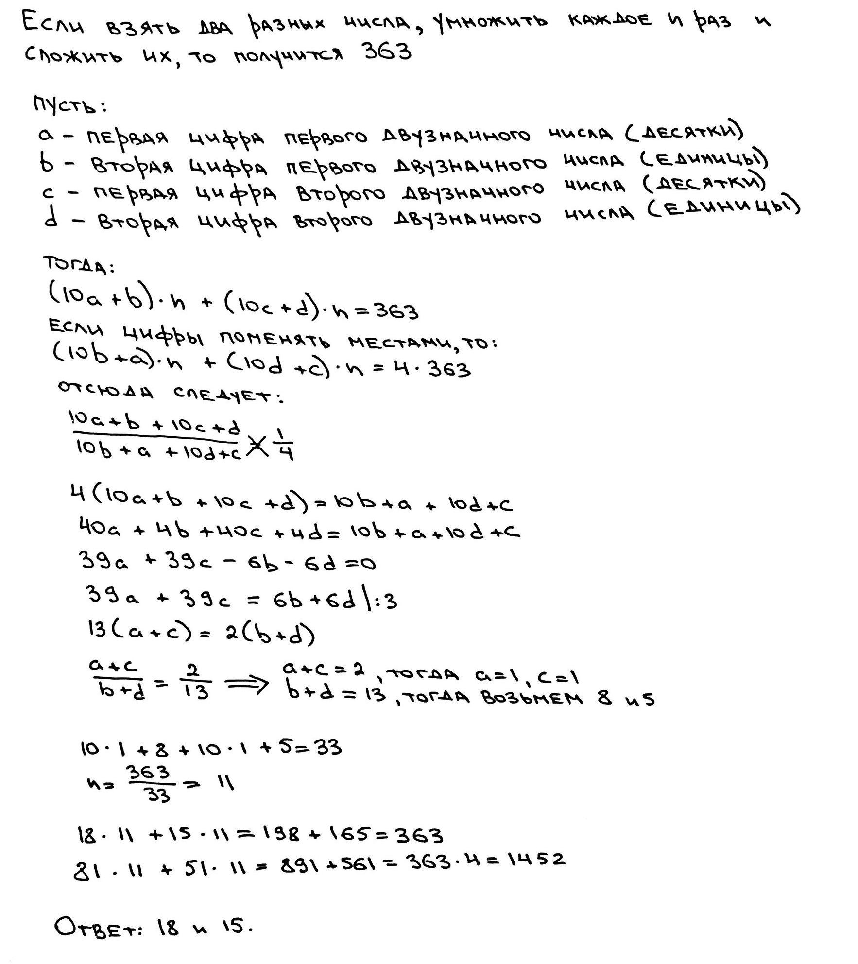 На доске написали несколько необязательно различных двузначных натуральных чисел без нулей в десятичной записи. Сумма этих чисел оказалась равной 363. Затем в каждом числе поменяли местами первую и вторую цифры (например, число 17 заменили на число 71).