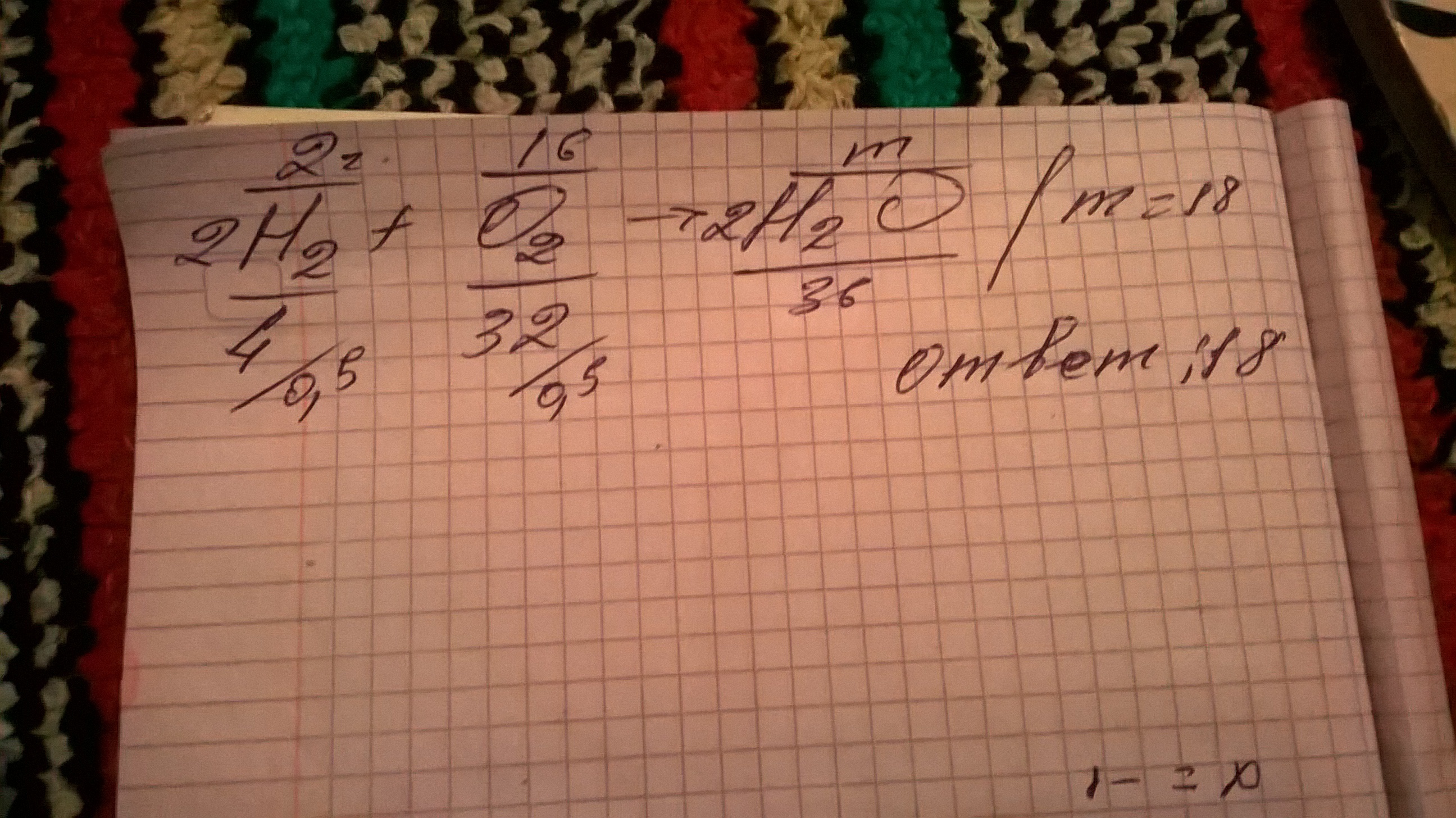 Водород массой 2 г полностью провзаимодействовал с 16 г кислорода. На основании закона сохранения массы можно утверждать, что масса полученной при этом воды равна 2 г 6 г 18 г 14 г