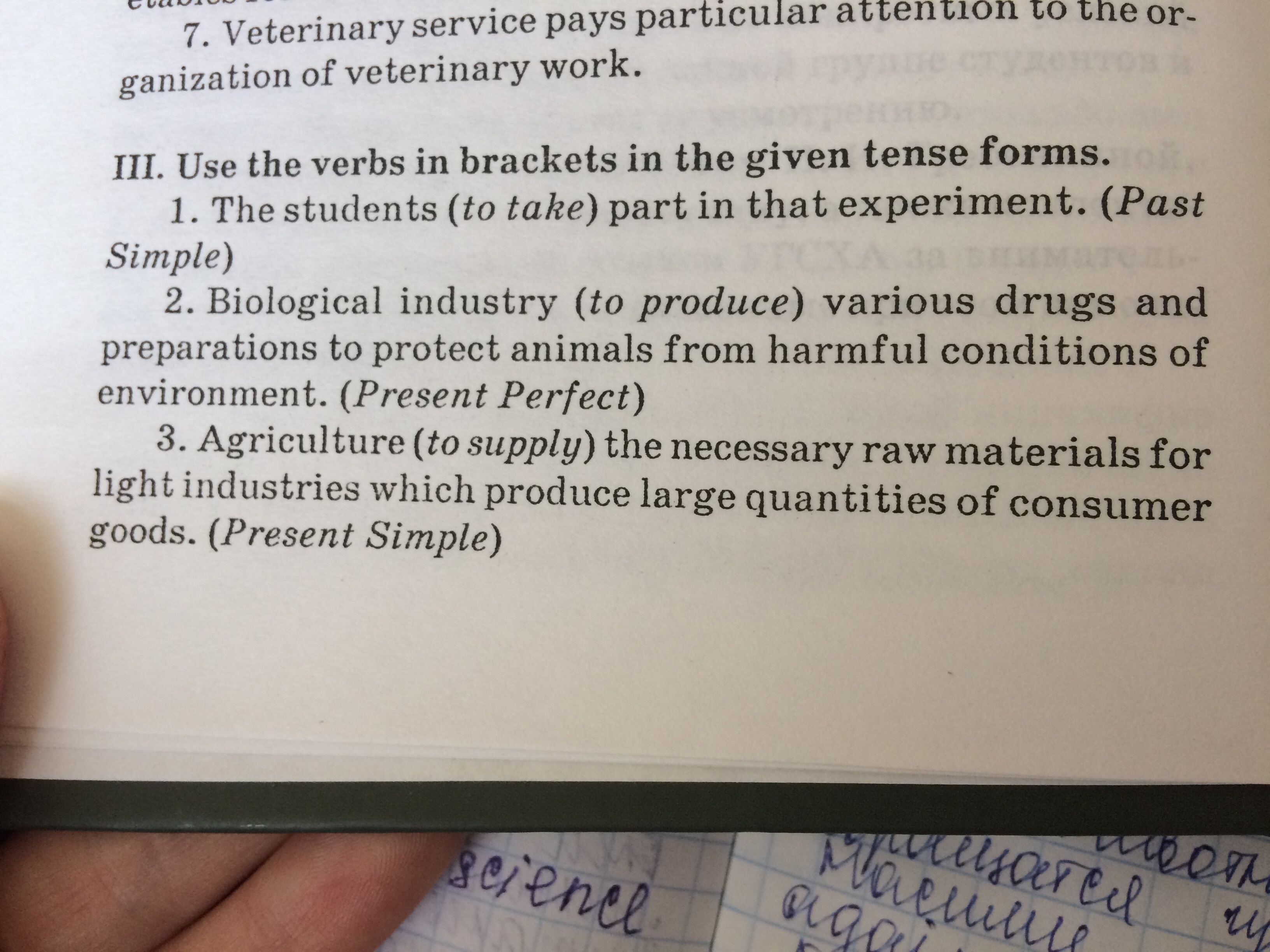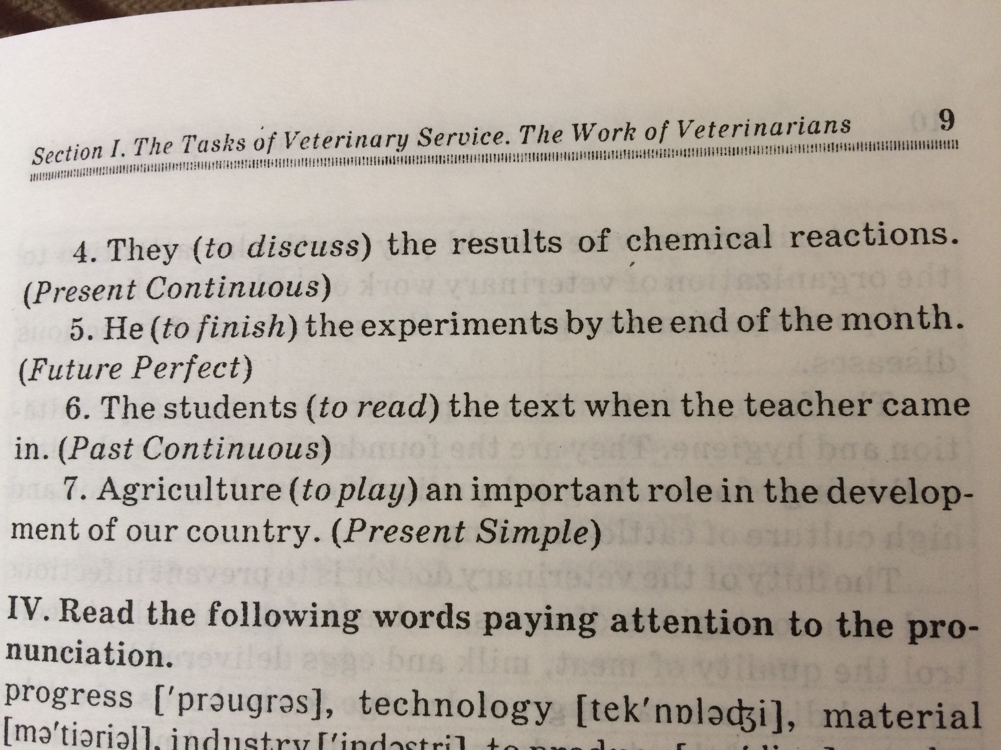 1)took 2)has produced 3)supplies 4)are discussing 5)will finish 6)were reading 7)plays