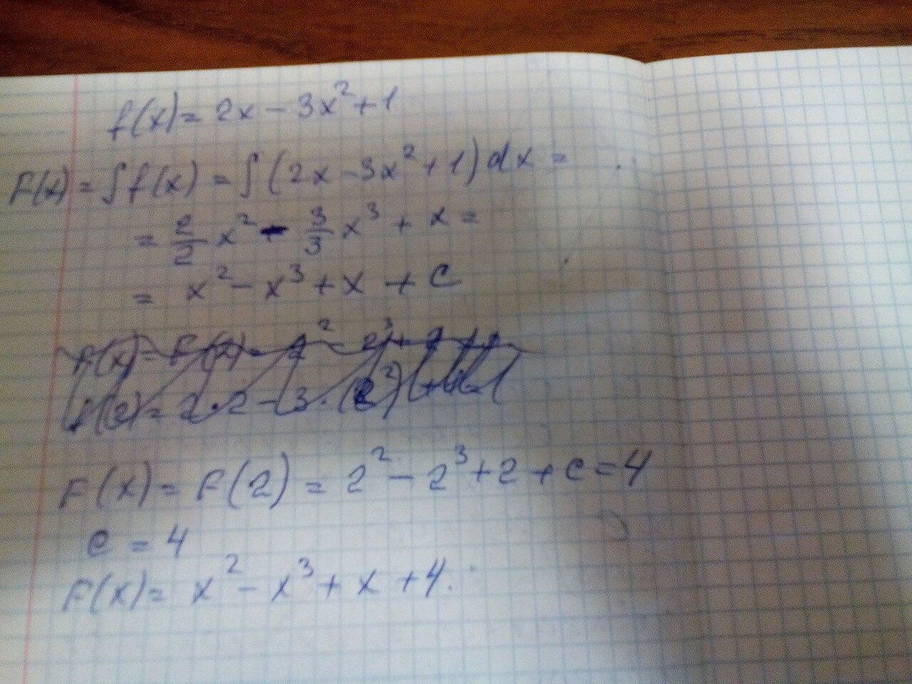 Найти первообразную для функции f (x) = 2x - 3x^2 +1 график которой проходит через точку M(2;4)
