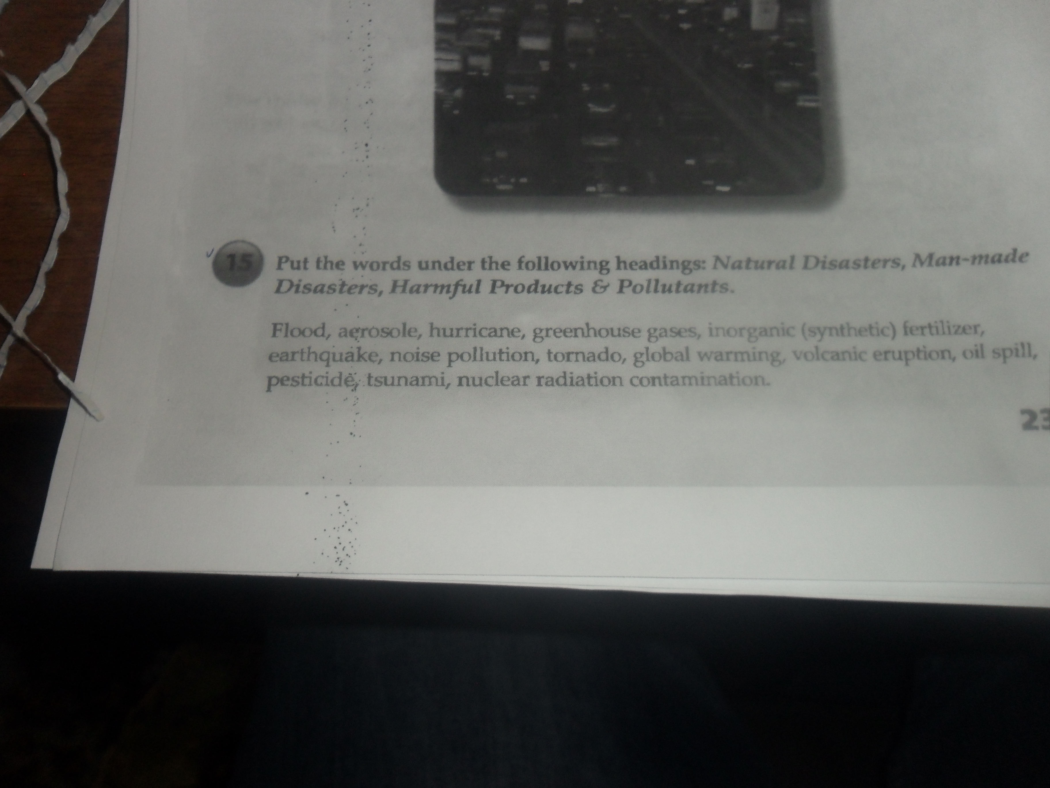 Man-made Disasters: greenhouse gases, noise pollution, global warming, oil spill, nulear radiation contamination