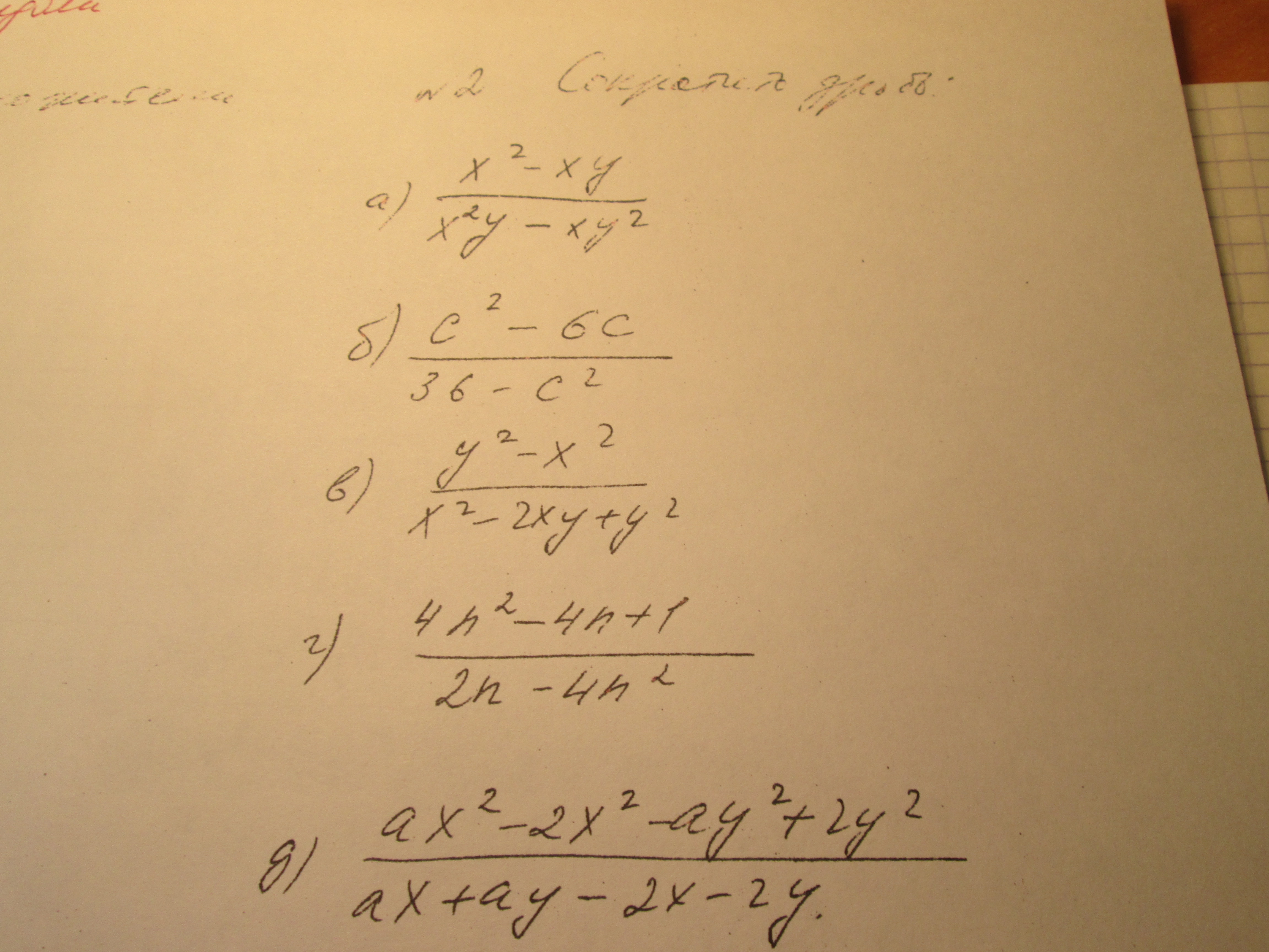 (с² - 6с) /(36-с²) = -с(6-с) / (6-с)(6+с) = -с/(6+с) = - с/(с+6)