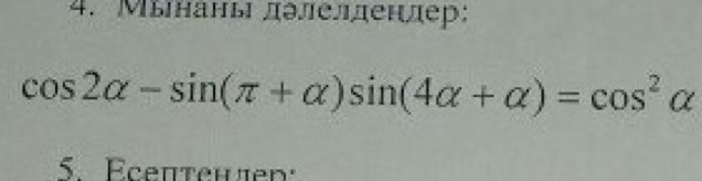 cos2a-sin(pi +a)cdot sin(4pi +a)=cos2a-(-sina)cdot sina=\\=underbrace {cos^2a-sin^2a}_{cos2a}+sin^2a=cos^2a