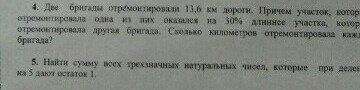 13,6 - 8 = 5,6 км отремонтировала 2 бригада.